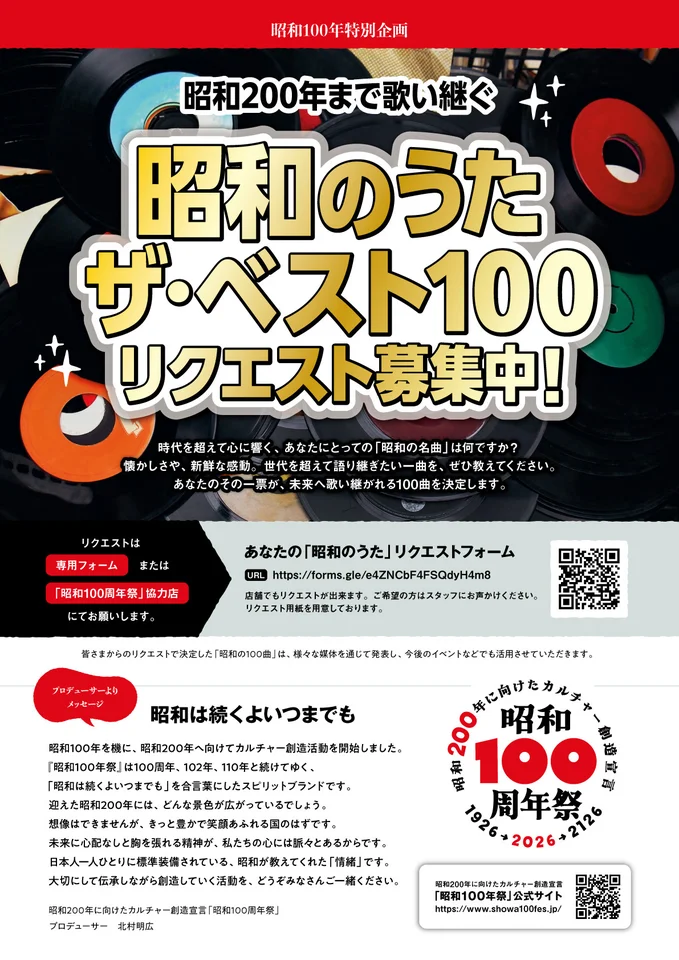 『昭和100年祭』を一緒に盛り上げてくれる仲間の募集を開始します。